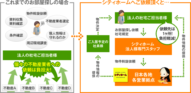 ホーム > 法人向け社宅探し > 法人契約・社宅代行業務